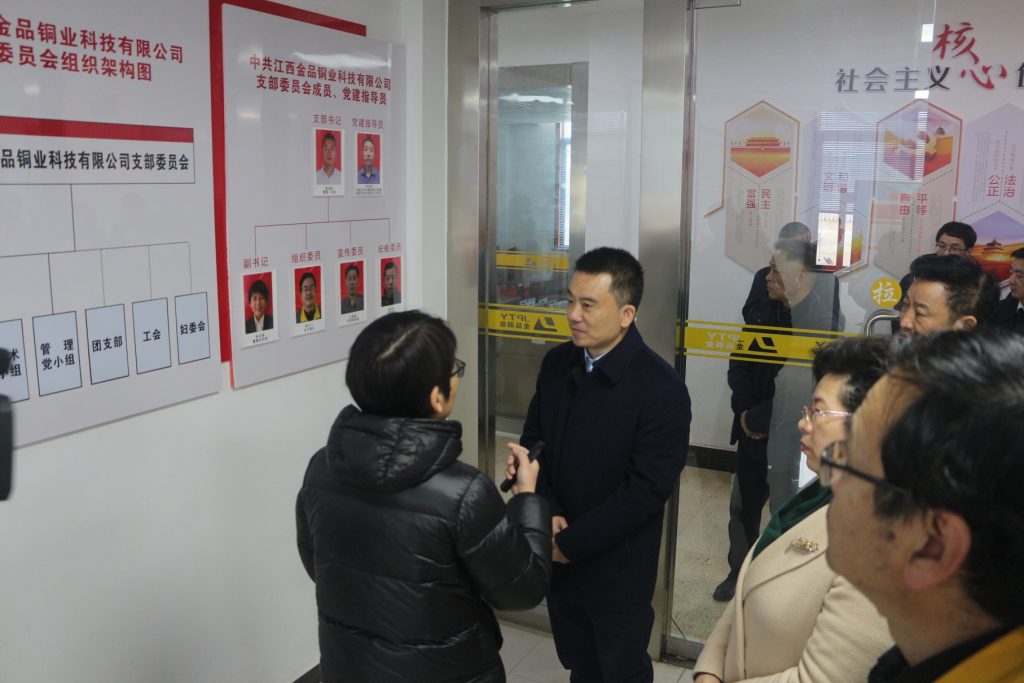 2022年2月15日(元宵节),抚州市委书记夏文勇一行深入抚州国家高新技术产业园区江西金品铜业科技有限公司调研公司非公党组织党建工作在企业发展、百亿目标达成、科研活动中所取得的成果,并与公司党支部负责干部进行了深入交流。他强调,各部门要全面推进复工复产,发挥非公党组织在民营企业中的引领作用,促进企业发展,引领思想方向,确保实现好的开局,再创新的辉煌。高新区党工委领导陪同调研。