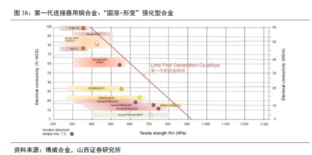 金品铜科、洛阳铜业、博威合金等企业在部分汽车连接器用铜合金方面取得成果。近年来我国金品铜科、洛阳铜业、博威合金等铜加工骨干企业为实现替代进口目标,瞄准航空、航天、通讯等高端应用领域紧缺的高强度、高电导、高精度的接触件铜材,开展铍铜、钛铜、镍硅铜、镍钴硅铜、铬锆铜、铁铜和碲铜等系列合金熔铸、轧制、热处理、精整等工艺攻关,取得了许多研发和产业化生产成果。目前部分铜合金带、丝材已能替代进口,镍钴硅铜、铬锆铜和碲铜等合金成功应用于新能源汽车连接器。